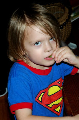 Since both boys finished their food and were good all day, Daddy made them smoothies for desert. Silly straws made it perfect…though a bit hard to suck up the drink.