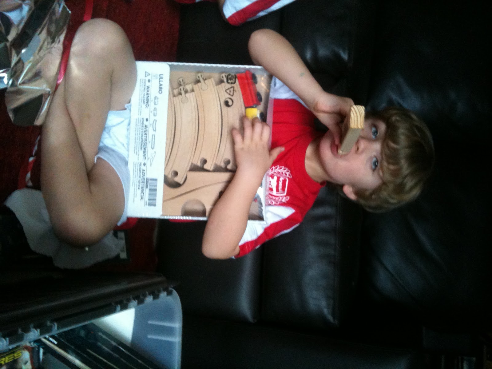 I had to work today so when I got home there seemed to be a lot to do in order to get ready. The boys wrote their letters to Father Christmas, made christmas crafts, baked christmas cookies, and read christmas stories together. We put the boys to bed in our room, because ‘Mr & Mrs Claus’ had a lot to do tonight! 7 hours until my boys will be up to see what Father Christmas left them. That means 7 hours to put together an IKEA loft bed, IKEA play kitchen items, make the Indiana Jones club house, find the two missing presents, wrap everything, fill the stockings, and to eat the cookies, the carrot, and drink the milk!