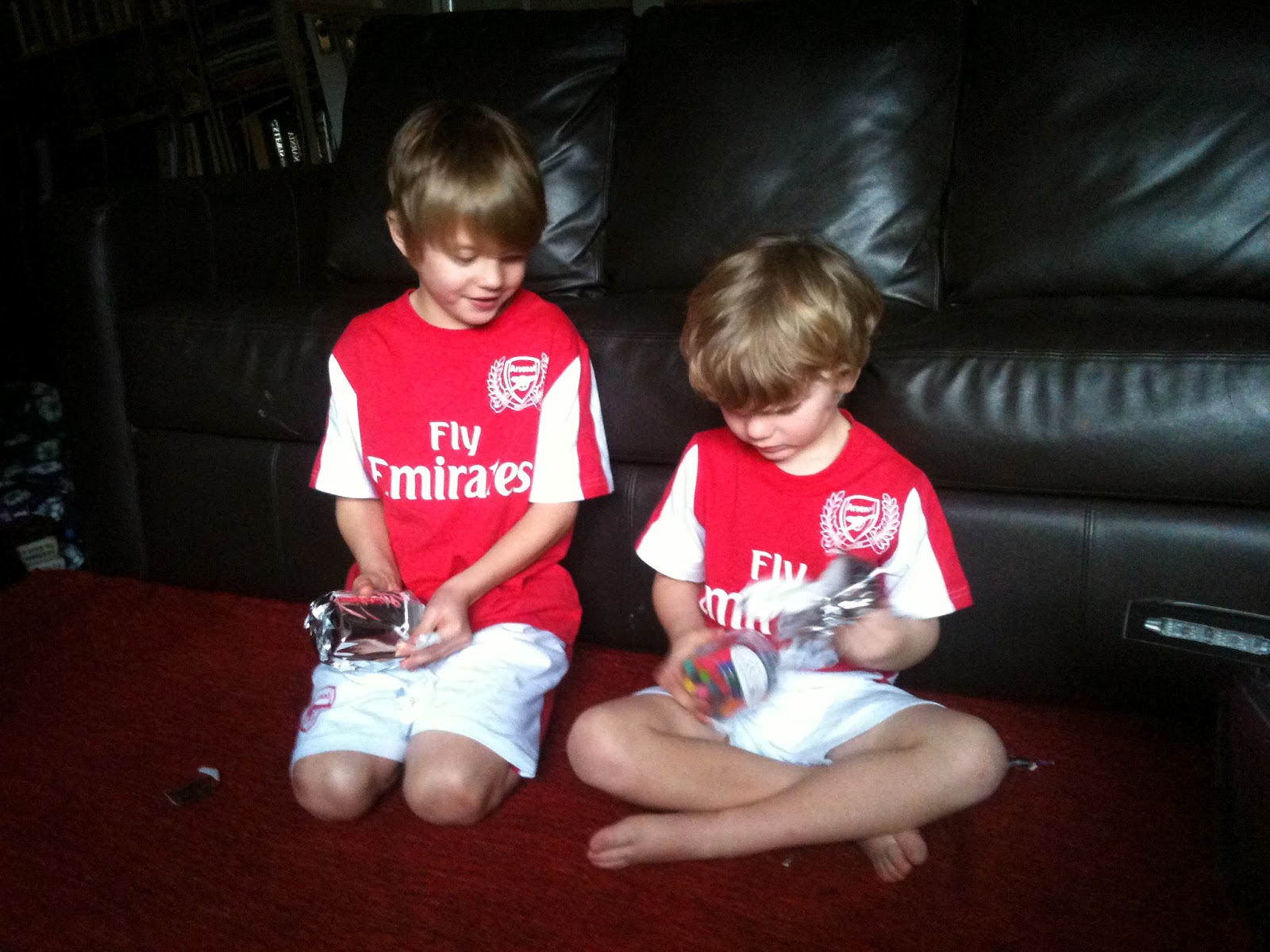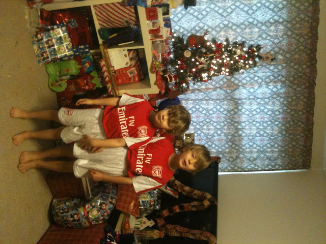 The boys with their ‘Christmas pajamas’ of Arsenal football outfits! |