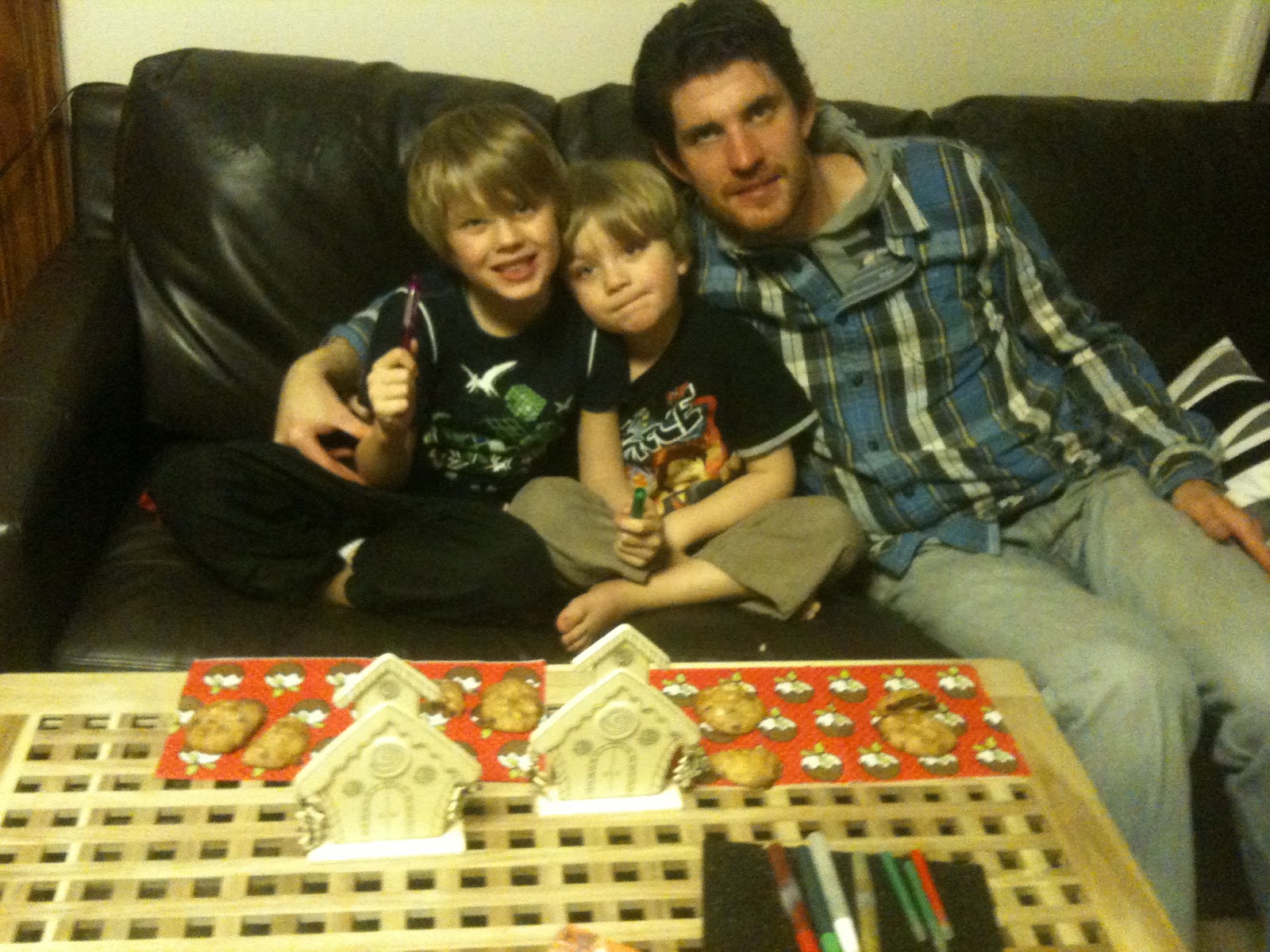 Ryan and the boys with their christmas crafts and cookies. |