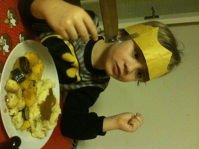 Batman and Indiana Jones makes for two very happy boys! |