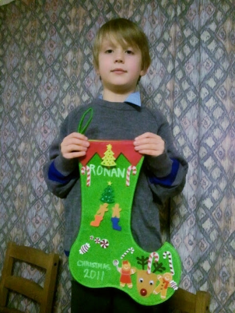 Ronan with his decorated stocking for Christmas.