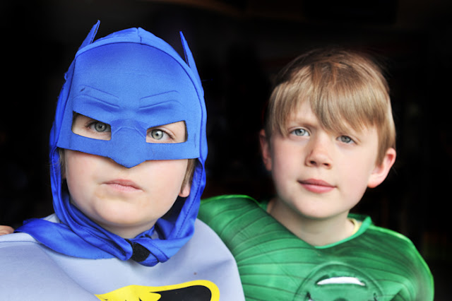 11 boys (plus two younger ones not pictured) all together.  England is not so big on dressing up for things. We had2 boys that were Justice League themed, one marvel superhero, one Indiana Jones (um, might have gotten confused from Ronan’s party invite back in January?),  one police officer, and four in plain street clothes.  I think in hindsight I should have just had Maddox dress up and made capes for all the other kids for better themed photo.  Or try it again in the USA.