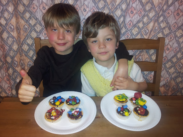 The boys with their finished fairy cakes.