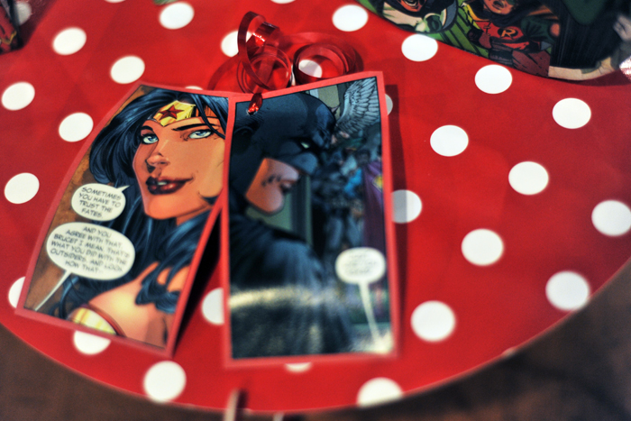 Wonder Woman and Batman gift tags.