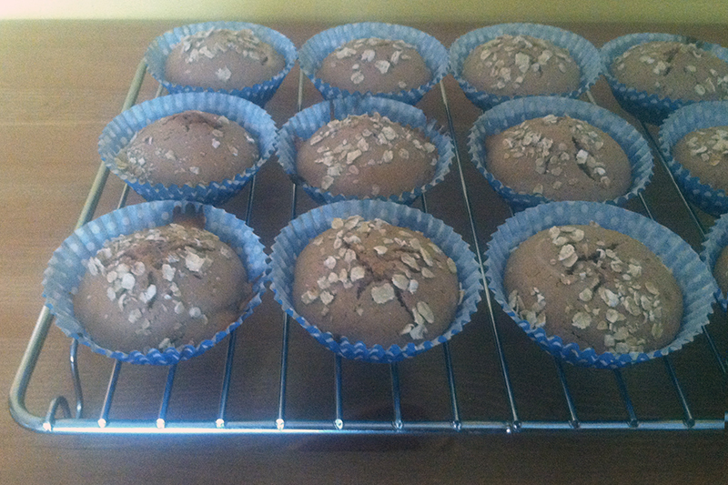 Roll each ball in the remaining porridge oats and press down on a greased baking tray.