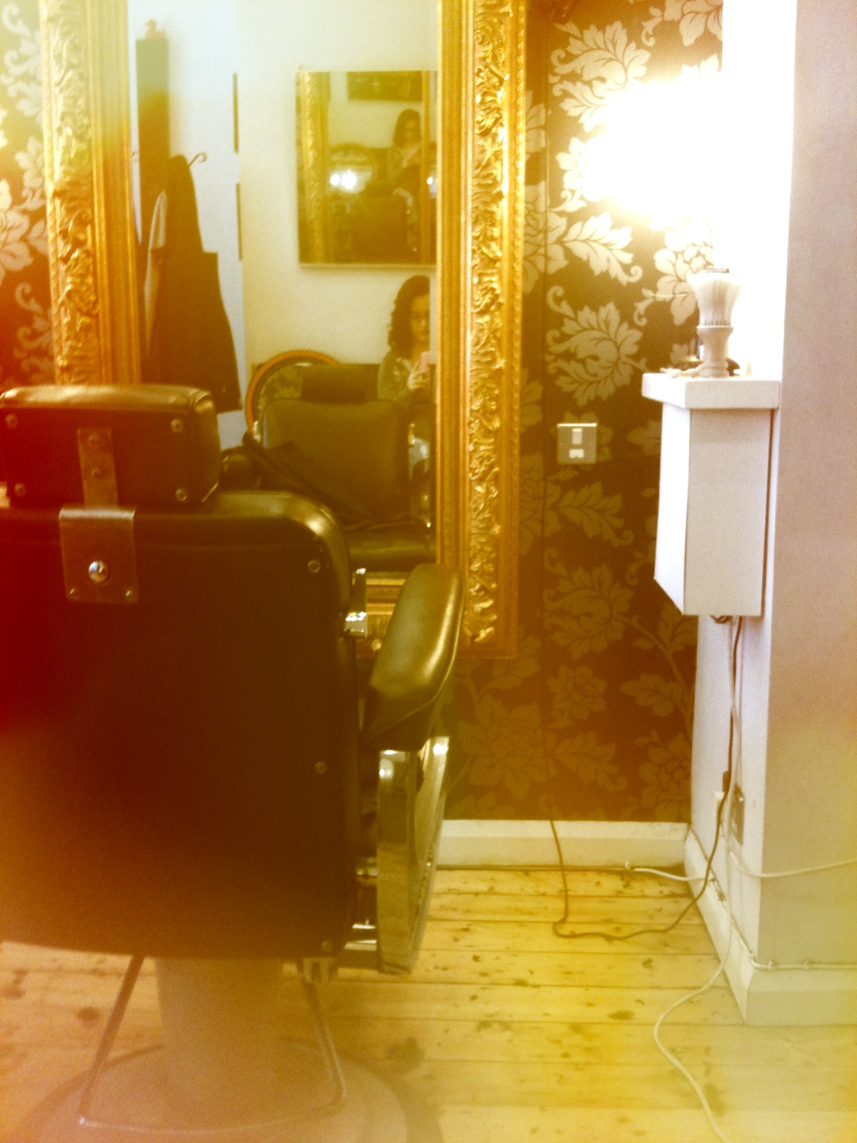 The barber shop waiting to get my head shaved.