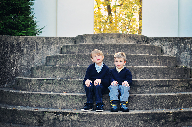My last family portrait was taken at Christmas time by our home here in Bath, England. I let my family know ahead of time what the colour palette was and sort of kept tabs on my mum and sister about what they would be bringing. When it came to plan out the outfits I let everyone ‘punch’ the colour of red in a different way. I wore a red cardigan, my sister wore red shoes and red accessories, my mum wore a red hat, my eldest son wore a red tie, and my youngest had red stripe detail in his dark plaid shirt. My husband did not have anything with red but matched the palette. Since we all punched red into the photo in different ways it did not matter that Ryan stayed neutral because it became a cohesive balance.